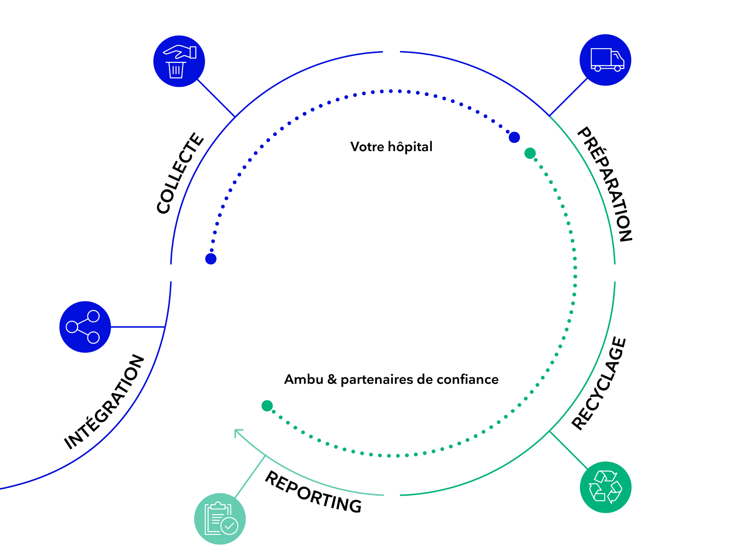 Ambu vous soutient tout au long du processus, depuis l’intégration et la formation à la collecte, au recyclage et au reporting.