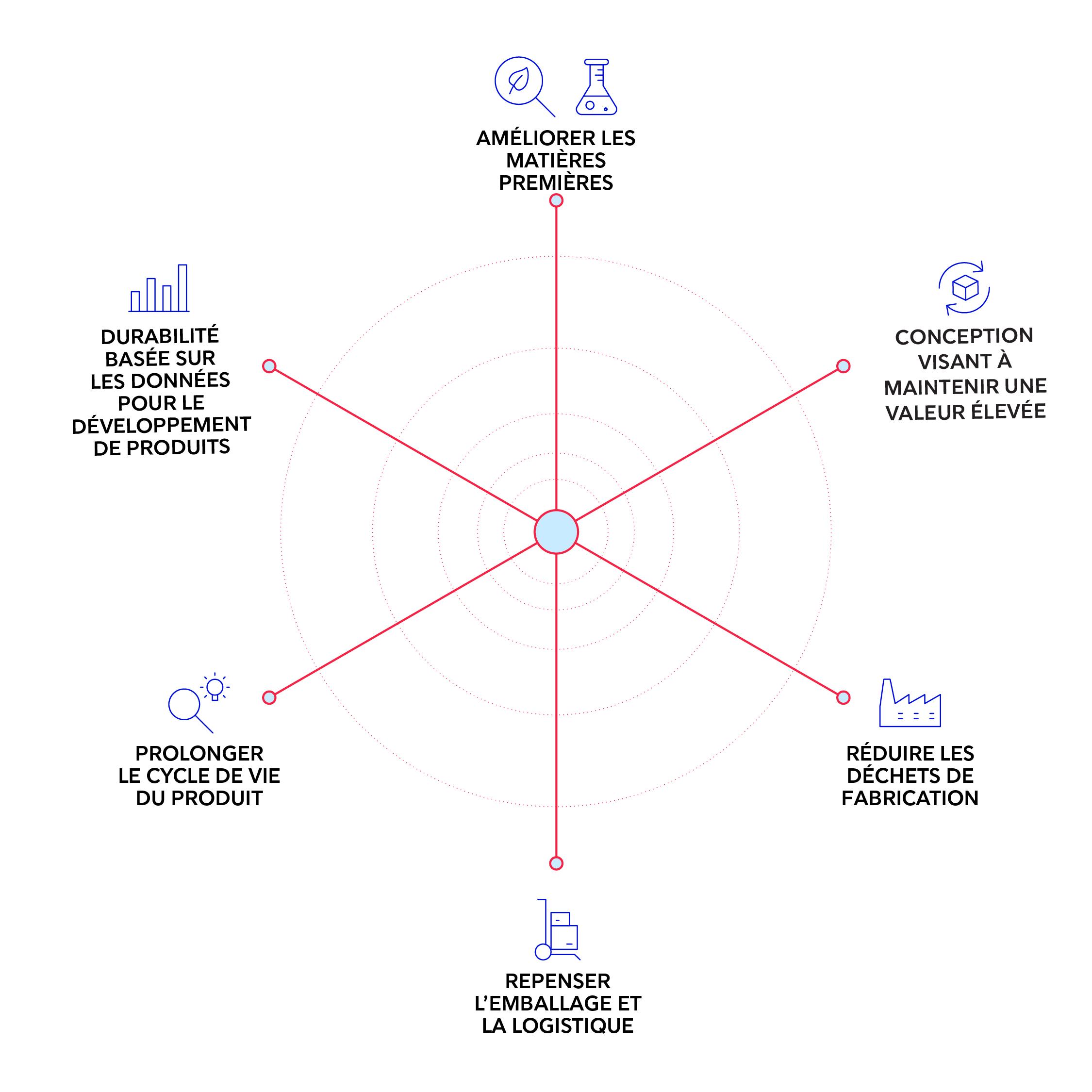 Cette stratégie englobe une approche holistique et vérifiable de la durabilité. Chaque action et chaque décision sont guidées par les principes et les indicateurs clés de performance décrits dans notre Guide de conception circulaire. La méthodologie axée sur les données du guide nous permet de :